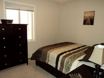 This cozy unit is meticulously maintained with a functional open concept foyer, kitchen, dining room and living room, creating the perfect space for gathering with family or friends and everyday living. Upon entering this unit, you walk into a good-sized entry way with double closets for extra storage space. The kitchen has plenty of cupboards with an island for extra counter space and storage, with 4 appliances and comes equipped with all the essentials for cooking your meals. The tastefully decorated living room offers plenty of natural light from the sliding patio doors which lead out to the North facing balcony. The primary bedroom is beautifully decorated and features a queen size bed with a large double closet. Finishing off the suite you will discover a 4-piece bathroom beautifully supplied with luxurious towels, along with an added bonus of your own IN-SUITE LAUNDRY ROOM that offers additional storage space.