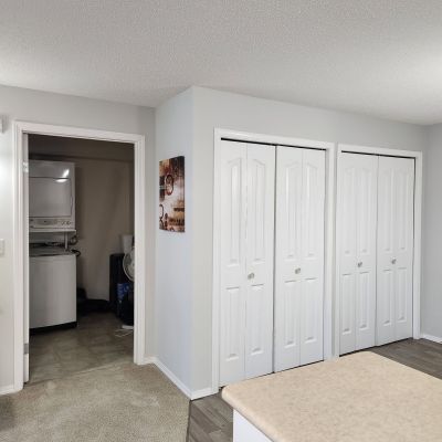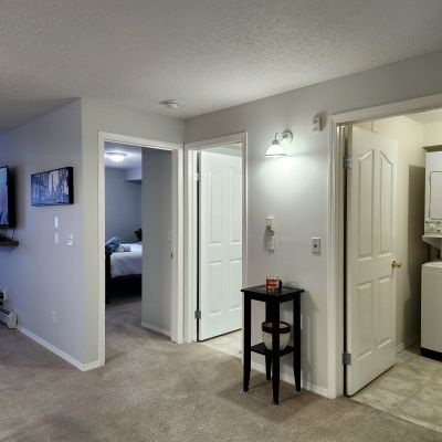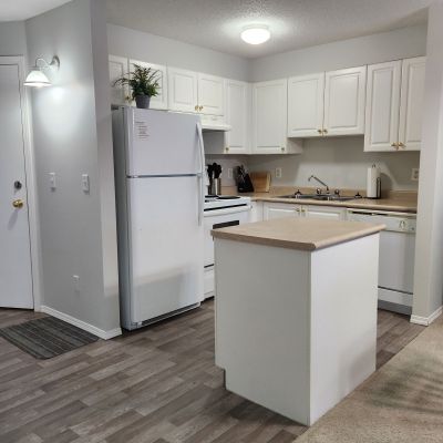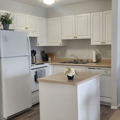 This cozy unit is meticulously maintained with a functional open concept foyer, kitchen, dining room and living room, creating the perfect space for gathering with family or friends and everyday living. Upon entering this unit, you walk into a good-sized entry way with double closets for extra storage space. The kitchen has plenty of cupboards with an island for extra counter space and storage, with 4 appliances and comes equipped with all the essentials for cooking your meals. The tastefully decorated living room offers plenty of natural light from the sliding patio doors which lead out to the North facing balcony. The bedroom is beautifully decorated and features a queen size bed with a large double closet. Finishing off the suite you will discover a 4-piece bathroom, along with an added bonus of your own IN-SUITE LAUNDRY ROOM that offers additional storage space.